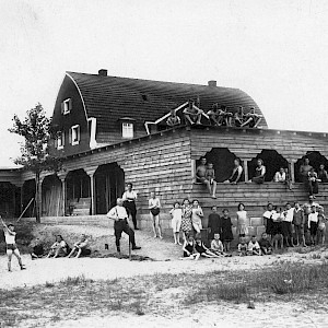 Der alte Fußballplatz wird aufgefüllt und längs zum Vereinheim neu angelegt und der erste Sportball findet im Verienheim statt.